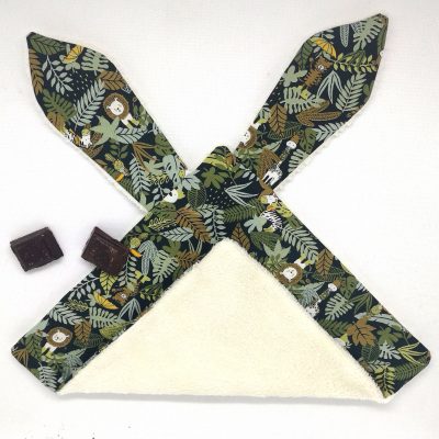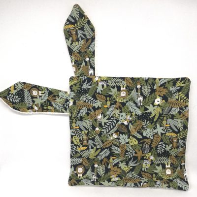 Tissu bleu/vert motifs jungle & animaux : coton biologique