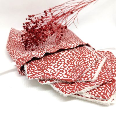 Tissu motifs graphiques rouge foncé et blanc : coton certifié Oeko-tex® Standard 100