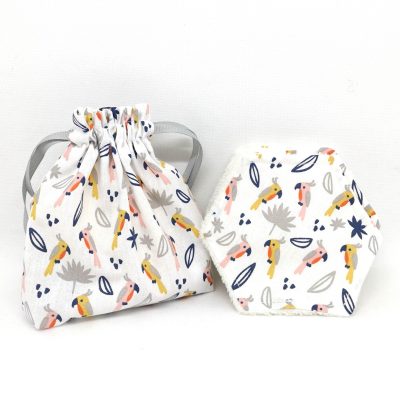 Cotons démaquillants « Wild Parrots » BIO (lot de 7 + pochette)