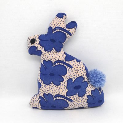 Tissu extérieur rose pâle et coquelicots bleus : coton