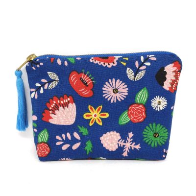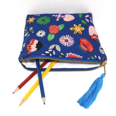 Tissu épais fond bleu et motifs multicolores : 80% coton, 20% polyester – tissus certifiés Oeko-tex® Standard 100
